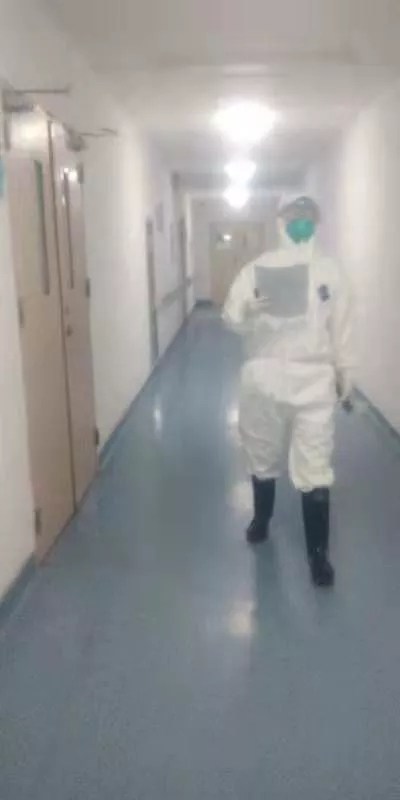 这两个精壮小伙子是第一批进入病区的疾控人,穿上防护服后就不能去厕所,不能喝水,不能坐下,护目镜内的汗珠不住的滴,但他们仍然一丝不苟地采了十几个阳性病人的咽拭子鼻拭子标本,七小时后才离开病区。