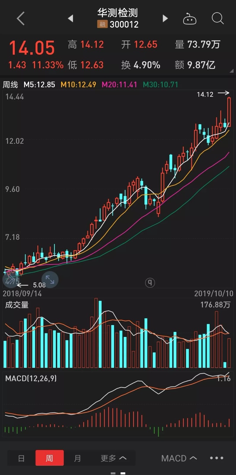 检测民营机构龙头企业华测检测今天也报收历史新高14.05元,相对于一年前低点5.08元一年涨幅达到177%。另一家国字号检测集团广电计量2018年营业收入12.28亿,净利润12192万,营业收入连续四年40%以上增长,今年冲击IPO成功,已于2019年9月12日在深圳中小板首发过会。随着多个优质检测机构进入资本市场并有良好表现,检测行业强者恒强的状况将日趋明显。