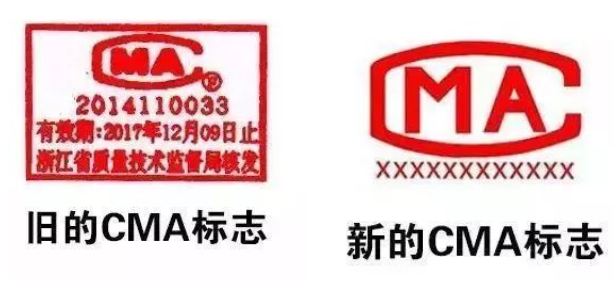 2015年8月1日起施行的原国家质检总局163号令《检验检测机构资质认定管理办法》,第十三条对检验检测机构资质认定标志的式样进行了明确规定,由China Inspection Body and Laboratory Mandatory Approval 的英文缩写CMA形成的图案和资质认定证书编号(12位数字)组成。式样如下: