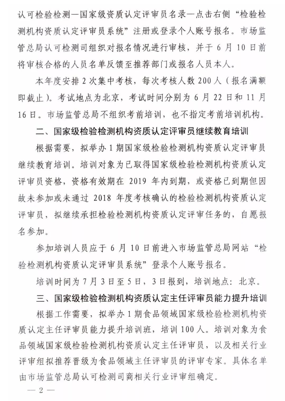 市场监管总局办公厅发布的市监检测函〔2019〕890号《关于开展2019年检验检测机构资质认定评审员培训和考核的通知》中提到,2019年起,启动“检验检测机构资质认定评审员年度网上能力测试”工作,每年9月1日至10月31日进行报名,11月1日至30日自主选择时间测试。