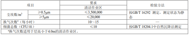 表2 液态产品清洁作业区的空气洁净度控制要求